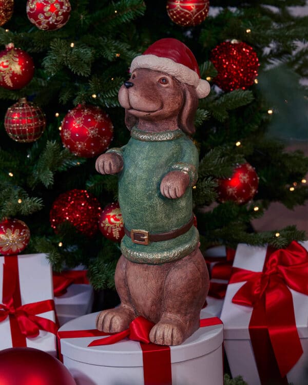 Chase hund juledekoration tilfører hjemmet både varme og legende stemning. Klædt i en grøn trøje med gyldne detaljer og en klassisk nissehue spreder han ægte julestemning. Den fine udformning og det venlige udtryk gør ham til en dekorativ favorit, der skaber glæde og hygge.