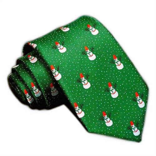 Grønt juleslips med snemændBring julestemningen helt i top med dette elegante og festlige juleslips i en smuk, klar grøn farve. Slipset er dekoreret med et charmerende mønster af små snemænd og let snefald, som giver et både sjovt og stilfuldt udtryk. Med
