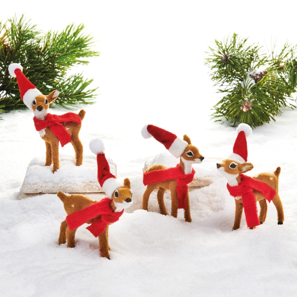 Juledådyr. Dådyr med nissehuer og halstørklæder. Mål:Højde: 8 cmFremstillet i polyresin. Pakket med 1 stk.