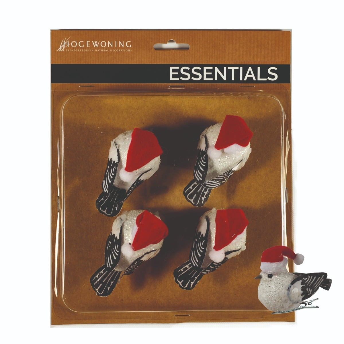 Fugle i glimentende hvid med sølvfarvet glimmer samt nissehuer på. Fuglene er med klips, så de fx let kan sættes fast på grene, kranse, pakker eller i dekorationer.Mål:Længde: 8 cmFremstillet af styropor, polyester mv.Pakket med 4 fugle i en æske.