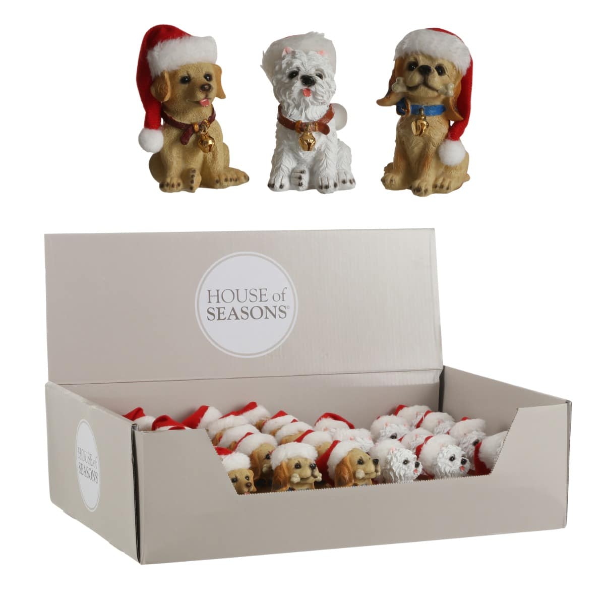 Sød, lille julehund med stor nissehue og guldfarvet bjælde i halsbåndet. Julehunden findes i 3 forskellige varianter.Mål:Længde: 5 cmBredde: 5 cmHøjde: 8 cmFremstillet i polyresin.Pakket med 1 stk.
