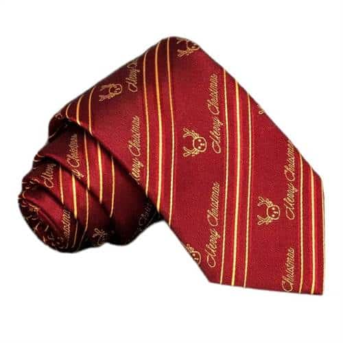 Bordeaux juleslips – Merry ChristmasGiv dit festlige outfit et elegant løft med dette håndlavede juleslips i eksklusiv silke. Slipset måler 8 cm på det bredeste sted og 148 cm i længden, hvilket gør det ideelt til både klassiske og moderne knuder. Den dyb