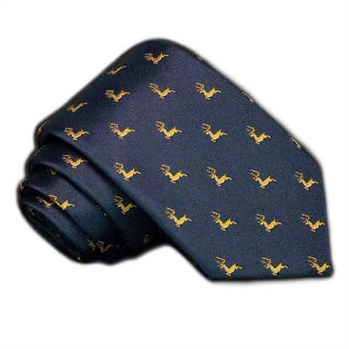 Mørkeblåt juleslips med rensdyrTilføj et subtilt, stilrent og festligt touch til din julegarderobe med dette elegante mørkeblå juleslips, håndlavet i eksklusiv silke. Slipset er dekoreret med et raffineret mønster af små gyldne rensdyr, der giver et diskr