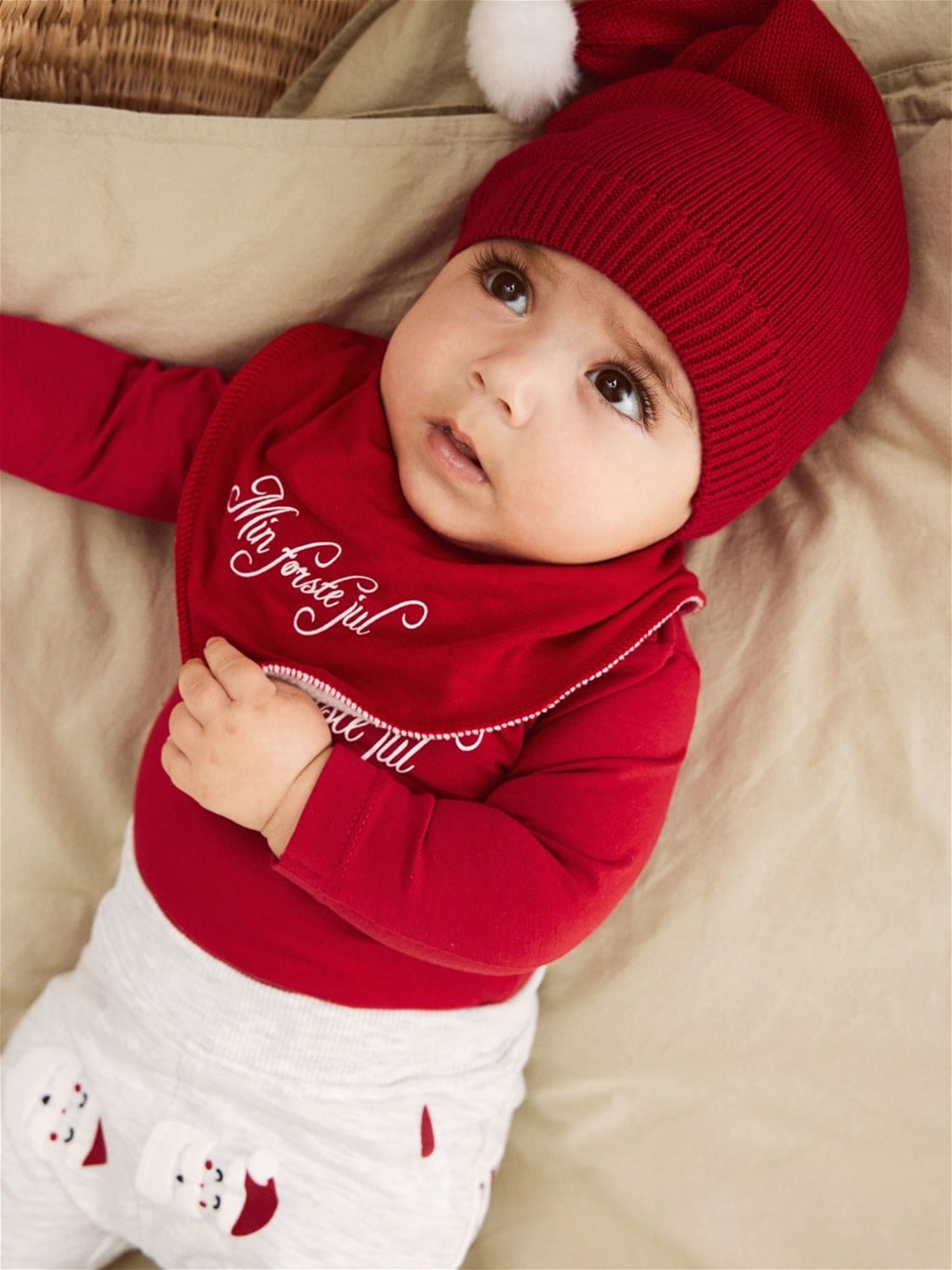 Mega sød nissehue fra Name it. Nissehuen er i strik og med lille kvast på toppen.