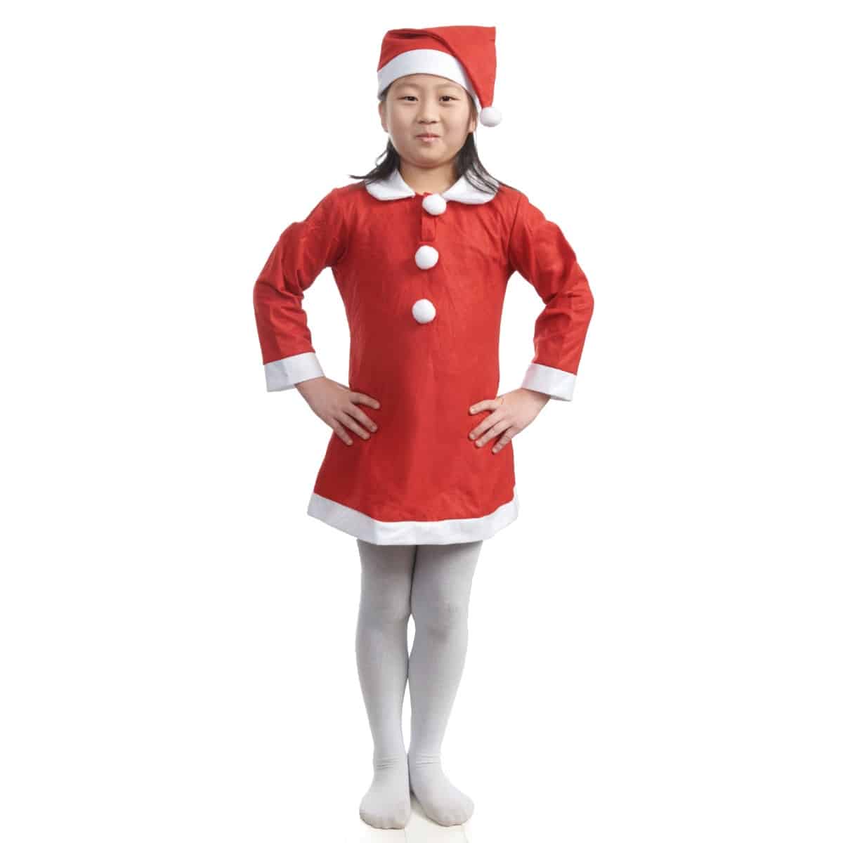 Nissekostume med nissekjole og nissehue. Passer til børn i alderen 6 til 8 år. Pakket med 1 sæt.
