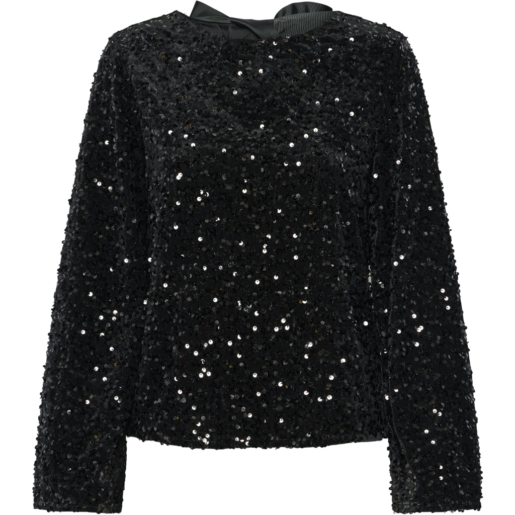 Smuk glimmerbluse fra Pieces med bindebånd på ryggen. Blusen kan styles med bukserne fra samme serie, for det ultimative glimmerlook.Materiale: 55% Polyester – Recycled, 45% Polyester
