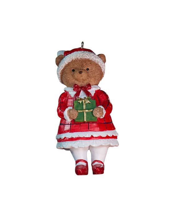 Riley er en yndig bjørn i rød kjole og nissehue, der bringer en magisk stemning til juletræet. Med fine detaljer som sløjfe og gave i hænderne bliver hun en eventyrlig dekoration, der fremhæver træets atmosfære. Kombiner med sine brødre Conrad og Ellington for at skabe et helhedsindtryk, hvor hver gren fortæller en historie.